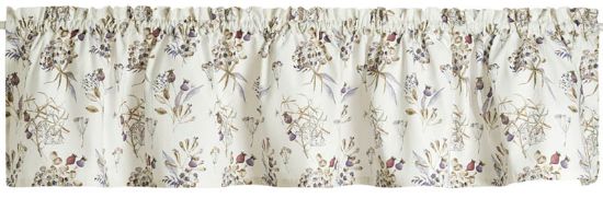 Vakker gardinkappe med lilla blomstermønster på hvit bunn. Kappen har løpegang og kan tres direkte på stangen. Nydelig design inspirert av naturen. Kombiner gjerne med andre produkter i serien.