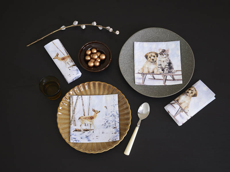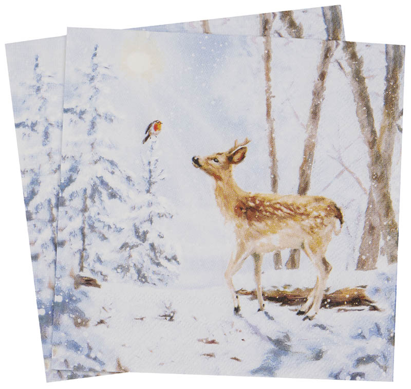 Papirservietter med et nydelig vintermotiv av et dådyr i skogen – en hyllest til nordisk natur og lun vinterstemning. Passer hele sesongen, fra førjulstiden til langt utpå nyåret. Perfekte til borddekking og flotte som gave.