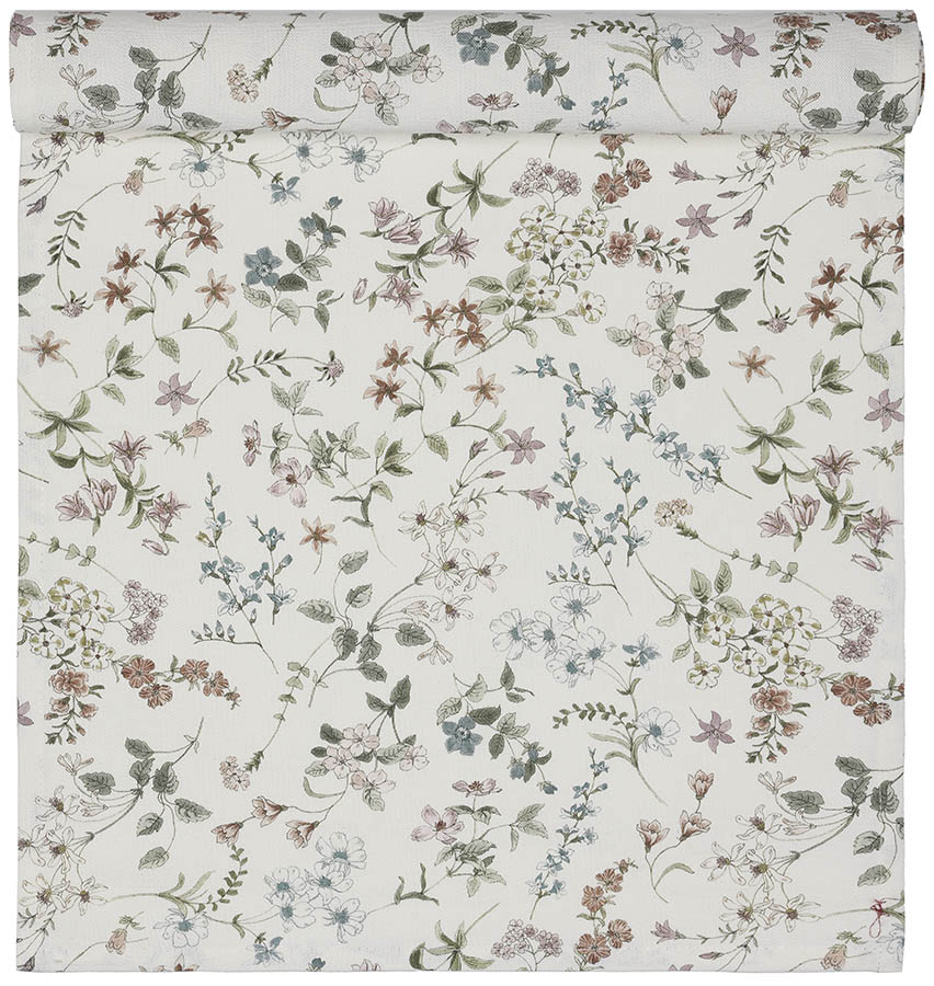 Liten bordløper med floralt mønster som gir interiøret et lett, vårlig preg. Den lille størrelsen gjør den ideell for både stuebord og spisebord.