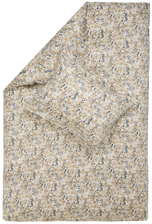 Nydelig sengesett i myk og behagelig sateng, prydet med et iøynefallende blomstermønster. De blå og beige nyansene skaper en rolig atmosfære og gir soverommet et harmonisk uttrykk.
