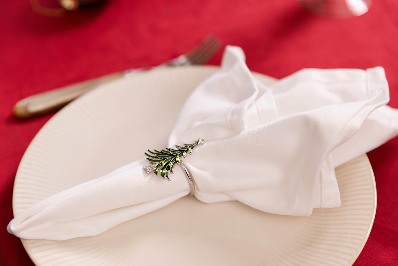 Elegant serviettring med et søtt grantre på toppen. Det koselige designet tilfører det lille ekstra til borddekkingen, enten du dekker til julefrokost eller julemiddag. Perfekt til tøyservietter, men fungerer også godt til papirservietter.