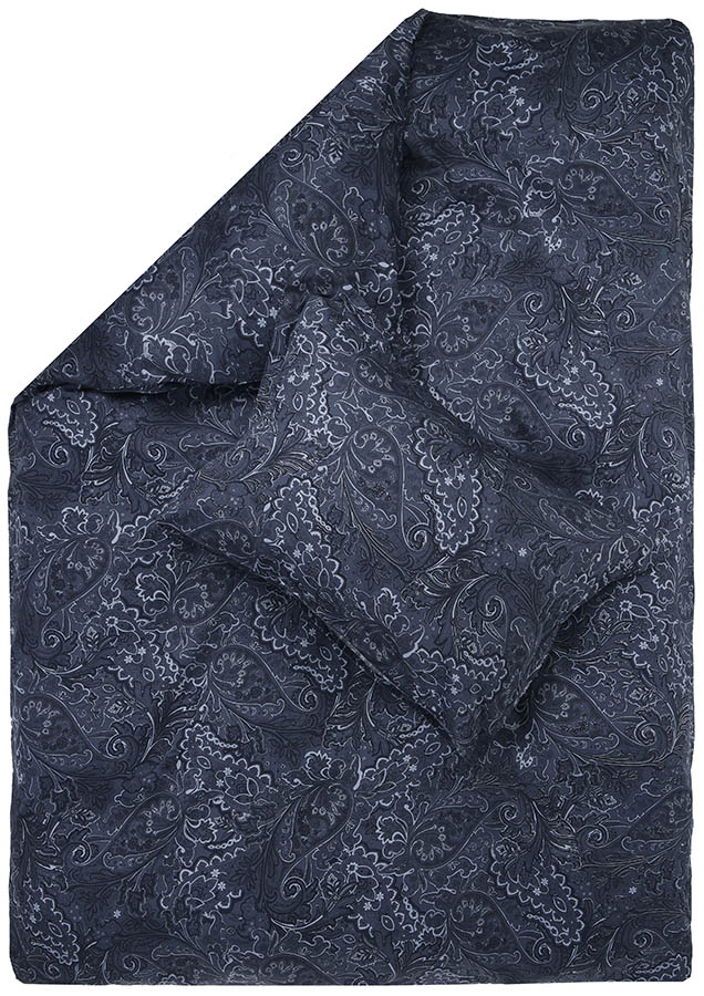 Mykt og behagelig sengesett i bomullssateng. Sengesettet har et klassisk paisleymønster og den mørkeblå fargen gir soverommet et sofistikert preg. Perfekt for deg som ønsker å kombinere komfort med elegant design.