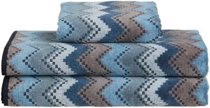 Sikksakkmønstret håndkle i tykk, myk bomullsfrotté med god absorberingsevne. Det unike designet er vevet med garn i flere nyanser, og det pregede sikksakkmønsteret tilfører ekstra tekstur og dybde.