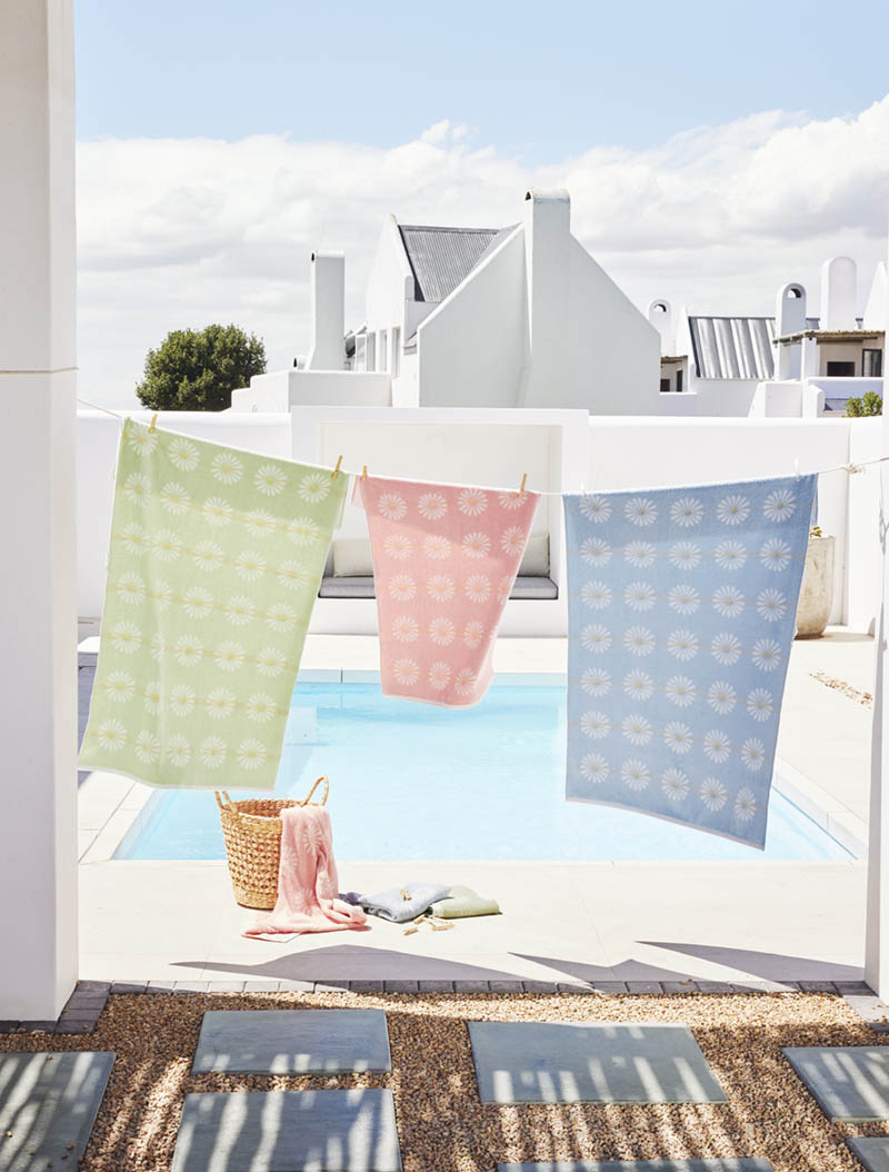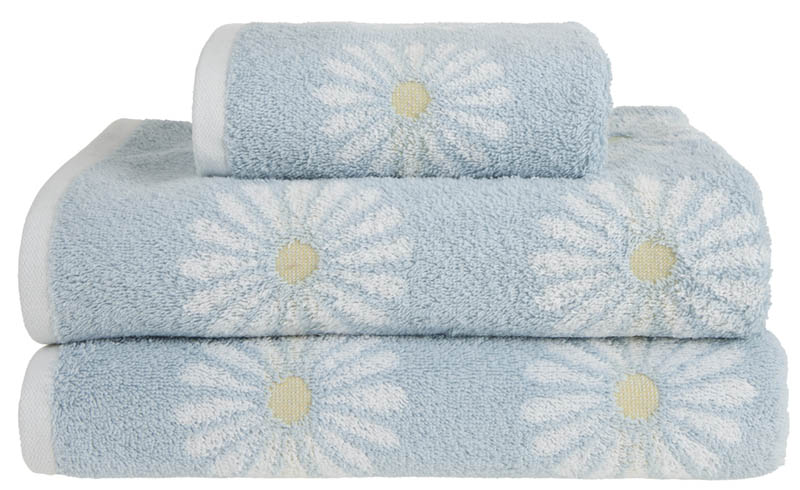 Tykt frottéhåndkle med vevd mønster. Prestekragene gir et lyst og lett uttrykk og tilfører badet et hint av vår.