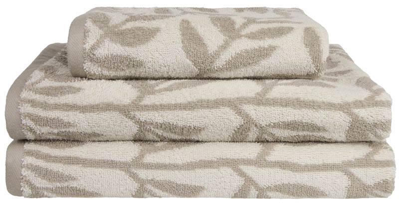 Håndkle i mellomtykk bomullsfrotté med god absorberingsevne. Håndkleet har et vakkert bladmønster som skaper både blikkfang og en harmonisk naturfølelse på badet. Perfekt for deg som ønsker et unikt design kombinert med høy kvalitet.