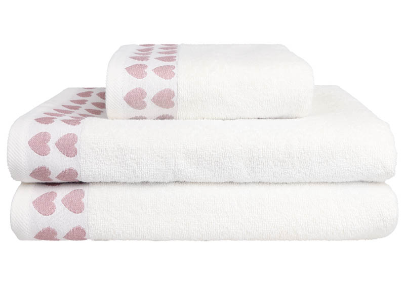 Hvite håndklær med hjerter