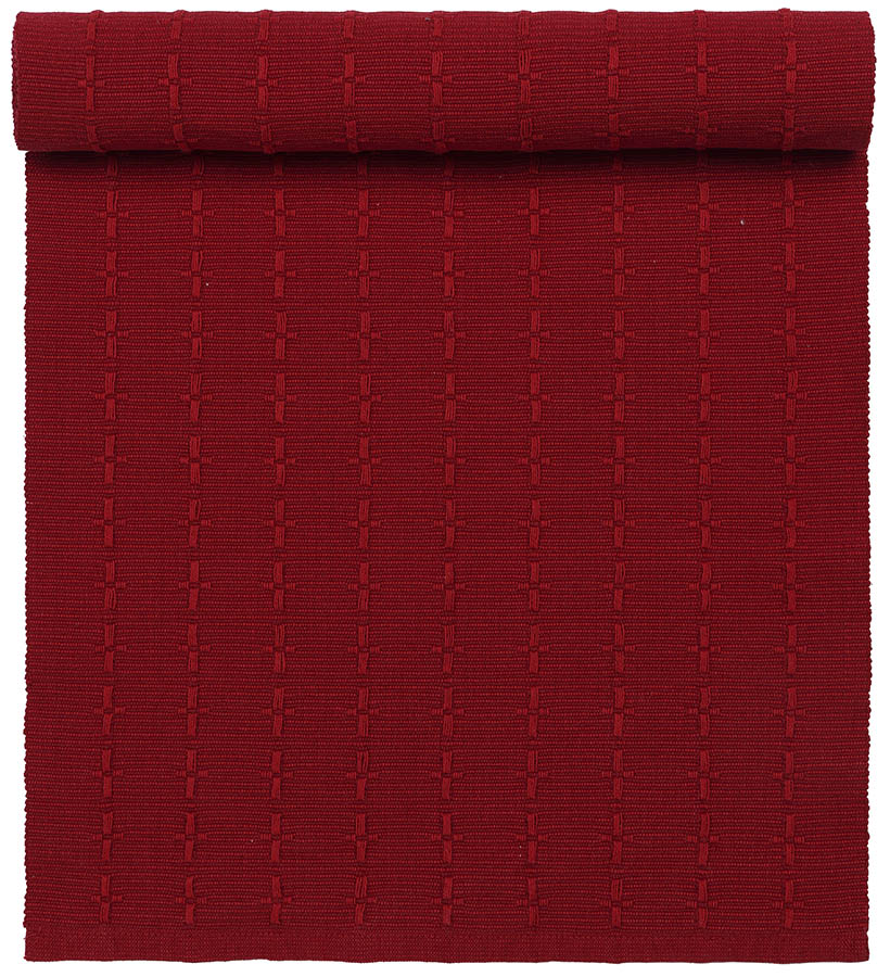 Liten juleløper i tykk, ribbevevet bomull. Den dype julerøde fargen skaper garantert julestemning, enten du bruker den på sidebordet, sofabordet eller et mindre kjøkkenbord. Kombiner gjerne med spisebrikken fra samme serie.