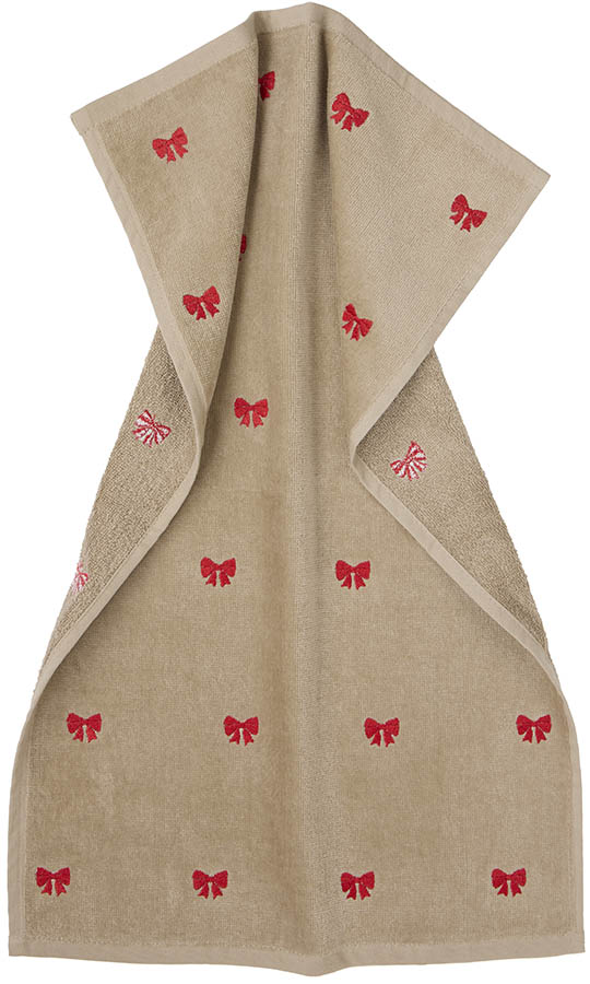 Nydelig gjestehåndkle i myk velour, brodert med klassiske julesløyfer. En liten detalj som sprer stor juleglede – også på badet.