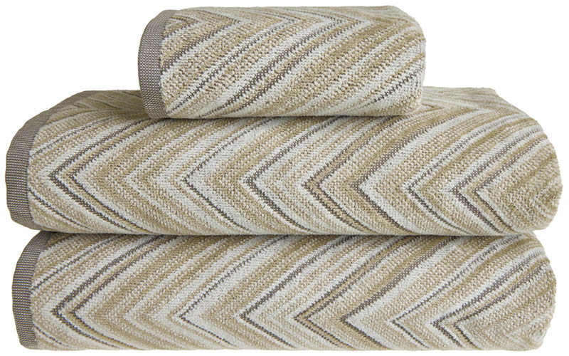 Sikksakkmønstret håndkle i mellomtykk bomullsfrotté med god absorberingsevne. Mønsteret er vevd i ulike nyanser, og som en ekstra detalj har håndkleet en fin bord på kortsidene. Kombiner gjerne med ensfargede håndklær i matchende farger.