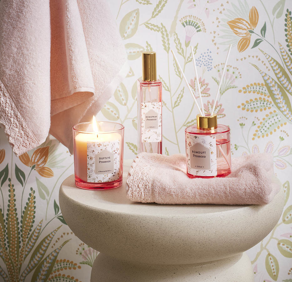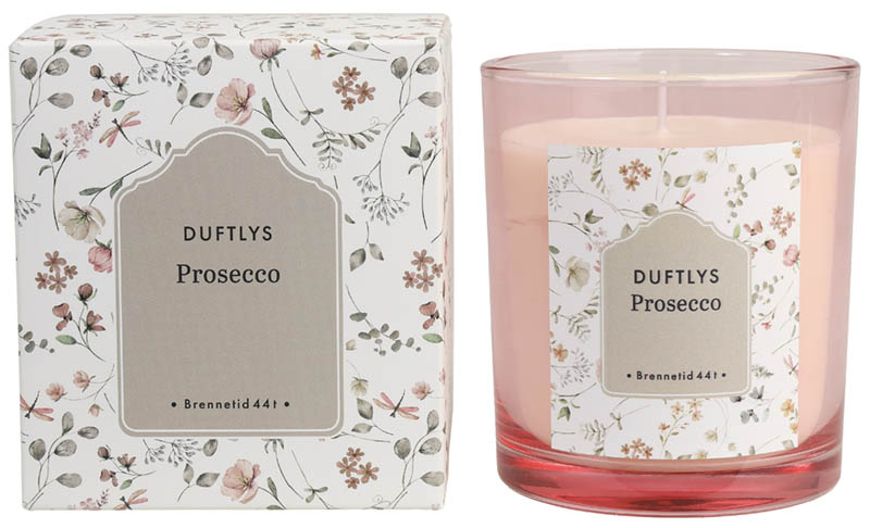 Duftlys med en frisk og søt duft som minner om boblende prosecco. Lyset er laget av soyavoks – et naturlig, nedbrytbart materiale som brenner med en ren og klar flamme. Det leveres i et rosa glass og er pakket i en nydelig eske med floralt motiv – perfekt hvis du ønsker å gi det bort i gave.