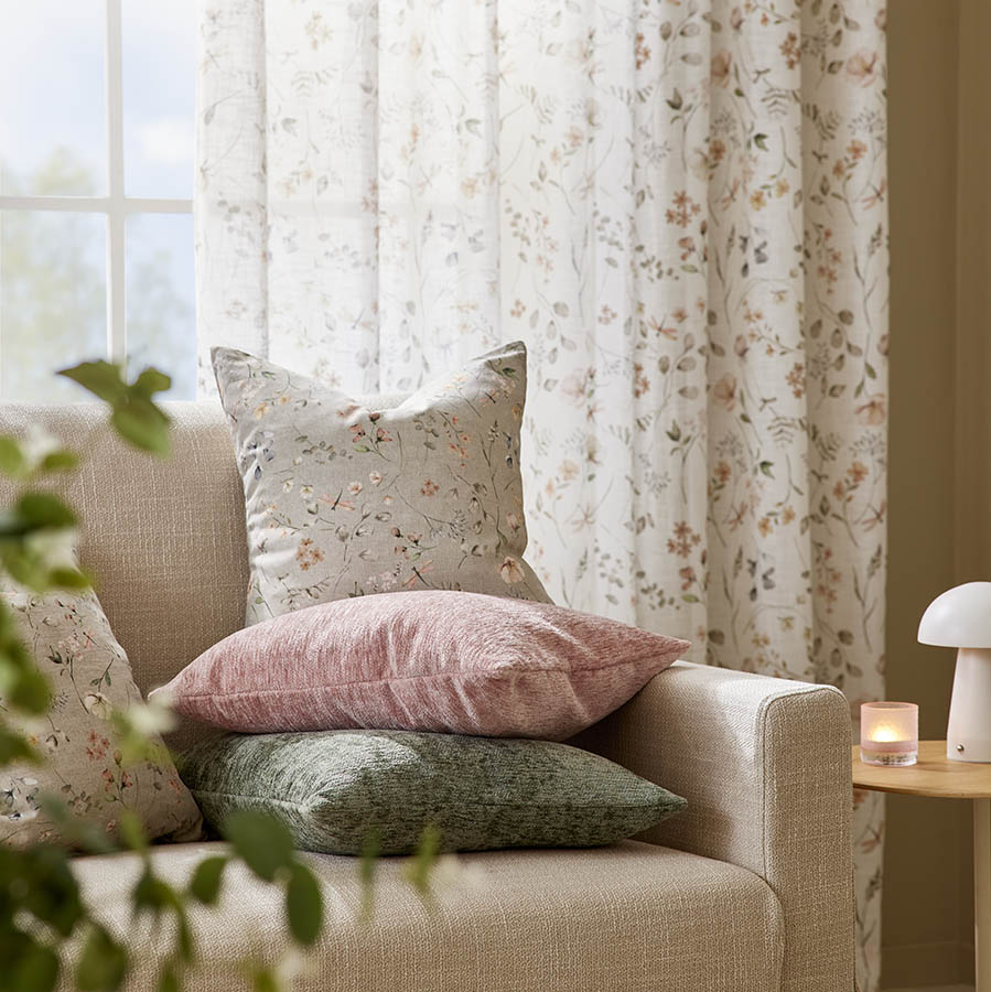Vakkert putetrekk med et iøynefallende floralt mønster. Mønsteret gir interiøret et vårlig preg, og de duse fargene bringer naturens ro inn i hjemmet.