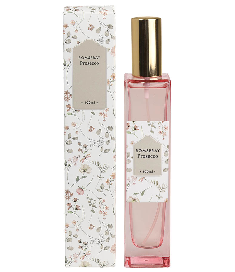 Romspray med en frisk og søt duft som minner om boblende prosecco. Kun 2–3 spray er nok til å spre en herlig aroma i hjemmets rom. Den rosa glassflasken med gulltopp er dekorativ i seg selv. Kommer i en nydelig eske med floralt motiv – perfekt hvis du ønsker å gi den bort i gave.
