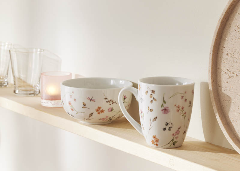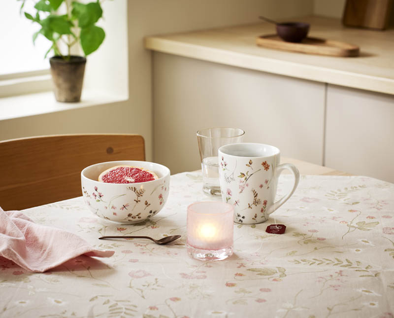 Vakker skål med et iøynefallende floralt mønster. Skålen har en ideell størrelse til frokostblanding og lignende, men fungerer også perfekt som serveringsskål til nøtter, frukt, bær, is og andre små fristelser. Det nostalgiske designet tilfører borddekkingen et friskt, vårlig preg.