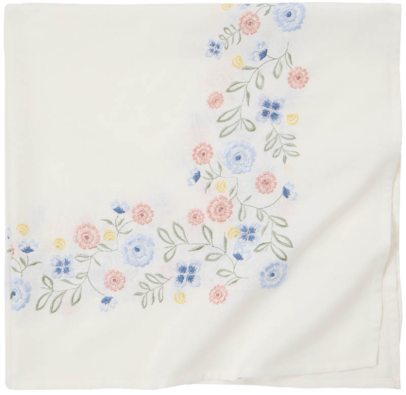 Søt duk med brodert blomstermønster – et koselig design som passer både på hyttekjøkkenet og hjemme. Dukens størrelse gjør den perfekt til stuebordet, sidebordet eller et mindre kjøkkenbord.