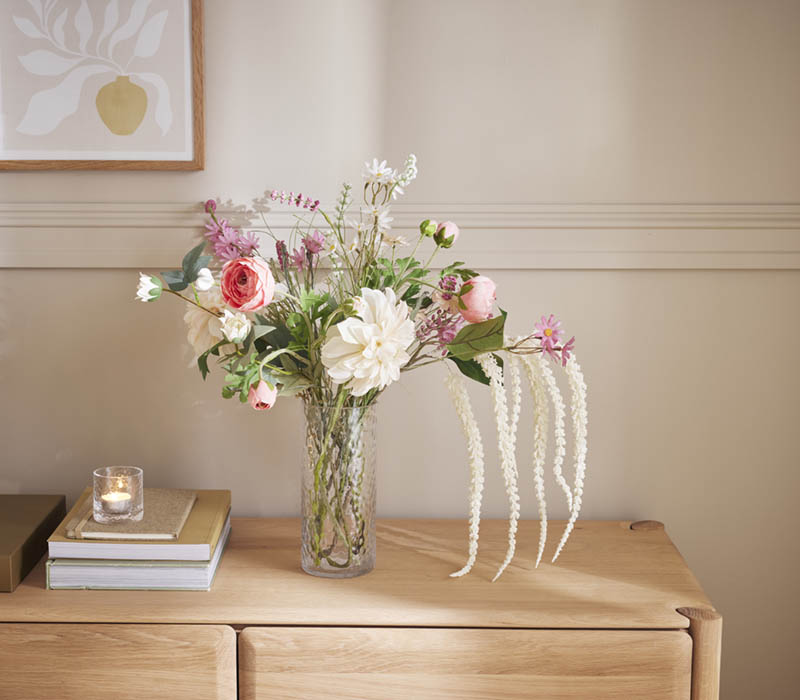 Kunstig dahlia med bøybar stilk – en tidløs favoritt som stadig blir mer populær. Plasser en eller flere i en vase, gjerne kombinert med hortensia og eukalyptus, for en vakker og naturlig bukett. Den kan også brukes liggende som bordpynt. Perfekt for deg som ønsker vakker naturinspirert dekor uten behov for stell.