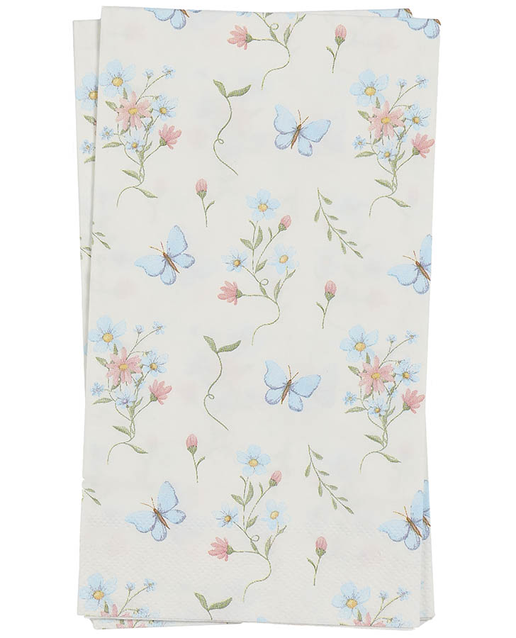 Rektangulære papirservietter med sommerfugler. Det dekorative motivet gir borddekkingen et sommerlig og lett romantisk preg.