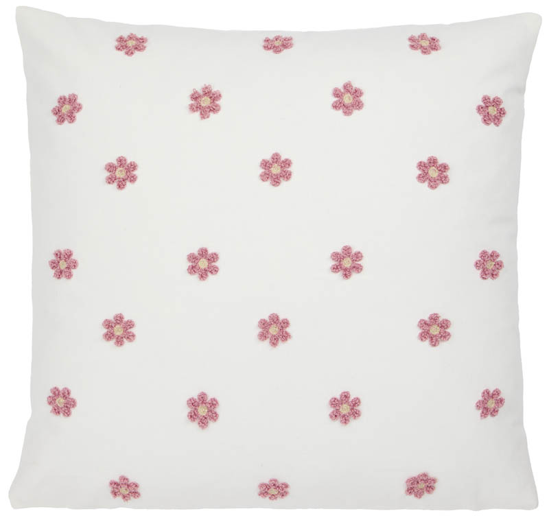 Hvitt putetrekk prydet med søte, broderte blomster. Det nostalgiske designet gir en herlig vårfølelse og blir et vakkert blikkfang i interiøret – hjemme eller på hytta.