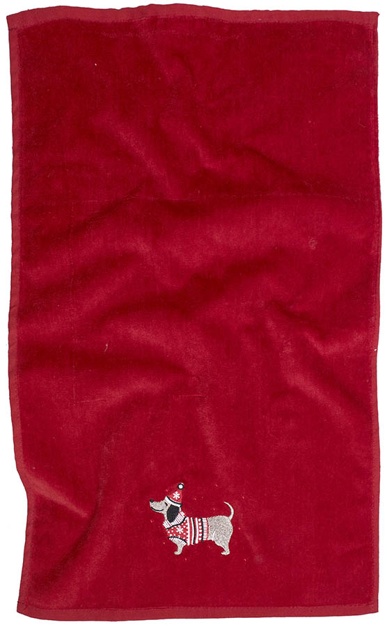 Pynt til jul i alle hjemmets rom! Dido er et julerødt gjestehåndkle i myk velour, brodert med en glad hund i julestemning. Et pyntehåndkle som skaper en leken og morsom julestil på badet. Kombiner gjerne med andre produkter i serien.