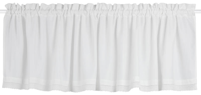 Vakker og lettstelt gardinkappe med fint fall og en dekorativ blondekant nederst. Kappen har løpegang og kan tres direkte på en gardinstang, gardinspiral eller spennstang.