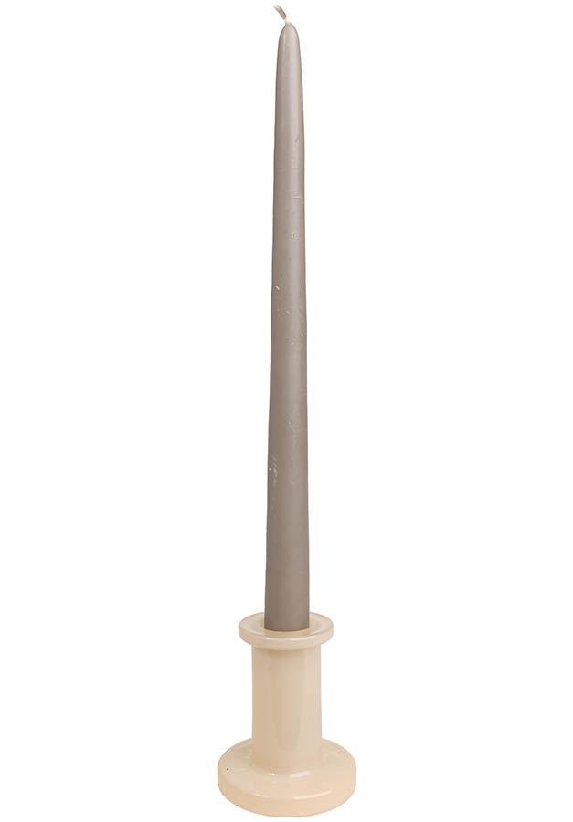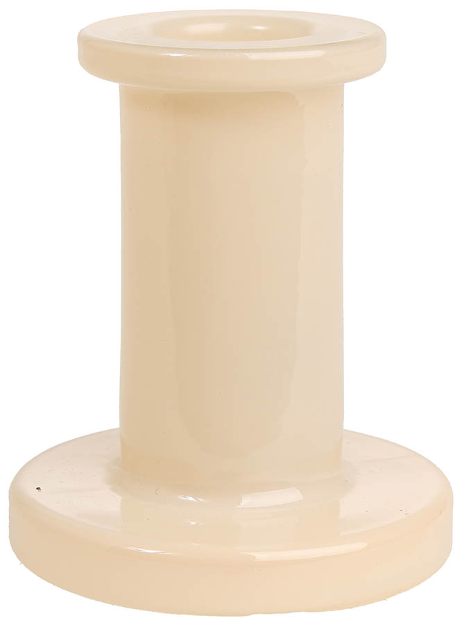 Leken og minimalistisk lysestake i glass, enkel å dekorere med. Finnes i to frg. Ca 8 cm x 6,5 dia nederst)