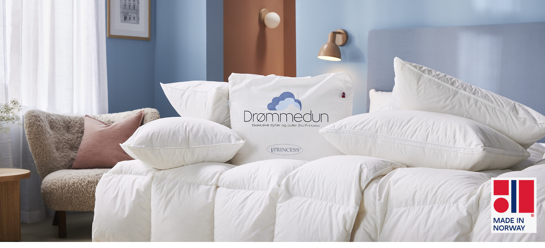 En middels høy og myk pute med en høy andel dun, noe som gjør den myk, luftig og formbar. Passer for deg som liker å ligge på siden eller på ryggen. Fin å kombinere med Drøm dunpute lav, hvis du ønsker å justere høyden gjennom natten.