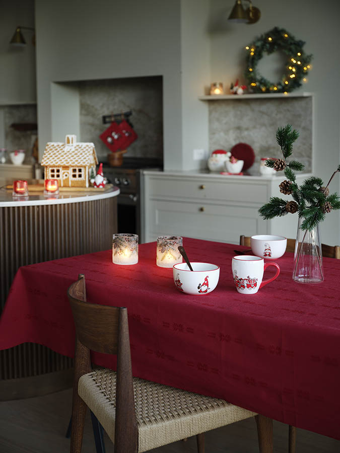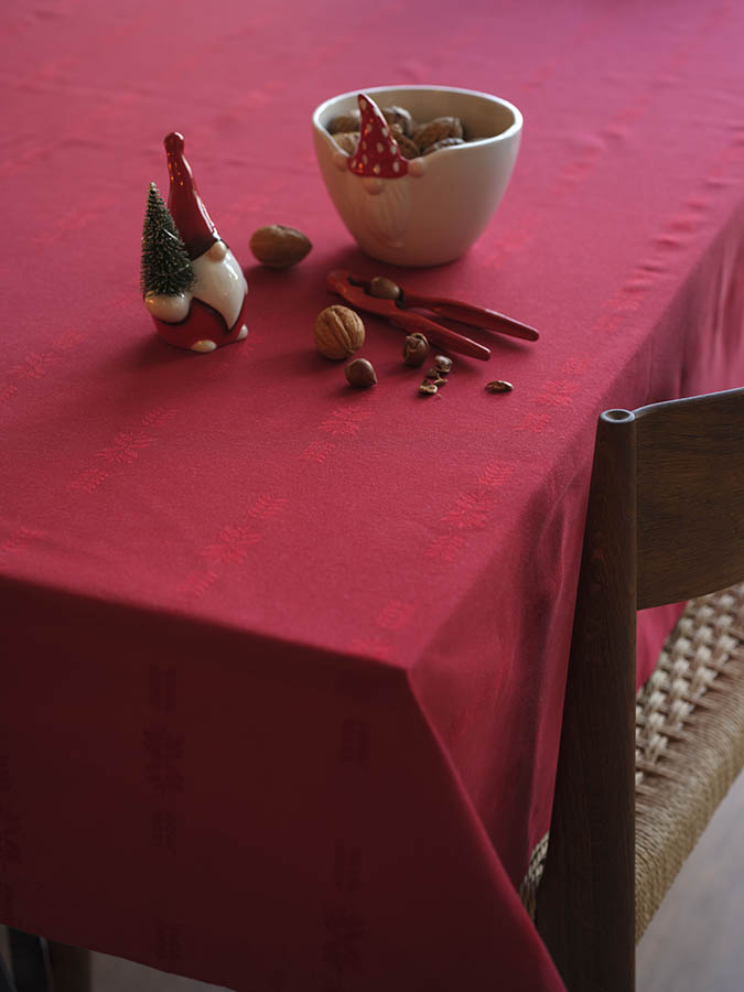 Et vakkert dekket bord setter stemningen for en god middagsopplevelse. Edel er en klassisk juleduk med jacquardvevet mønster – en elegant duk du kan bruke og glede deg over år etter år. Den tørker raskt etter vask og er enkel å stryke.