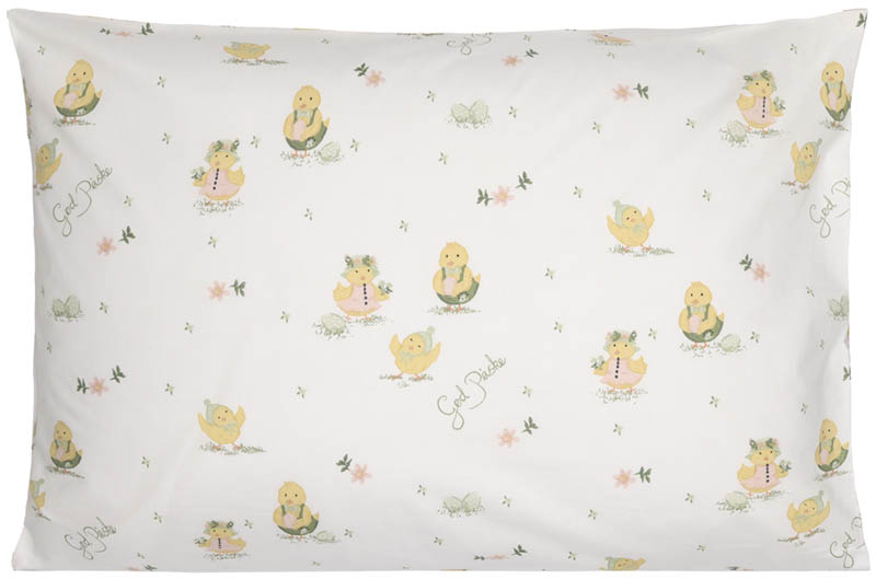 Enkelt putevar til standard hodepute, dekorert med påskekyllinger i en myk, nostalgisk illustrasjonsstil, med små blomsterdetaljer i dempede pastellfarger. Det myke bomullsstoffet gir en behagelig følelse mot huden, og motivet tilfører et lett påskepreg på soverommet.