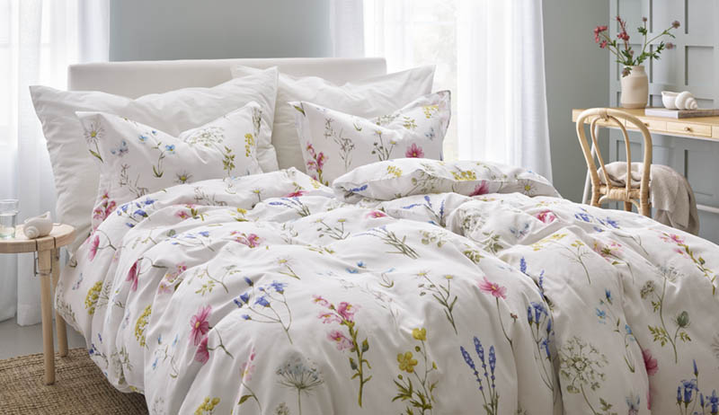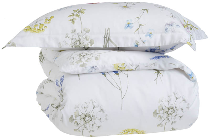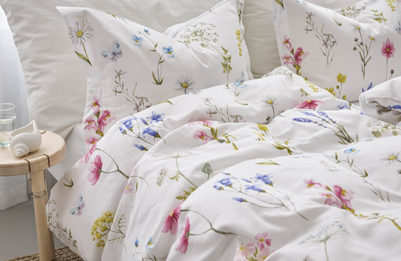Vakkert satengsengesett med vårlig design. Gjør stilen komplett med matchende laken og putevar.