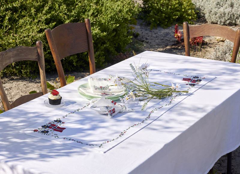 Passer til kjøkkenbord, stuebord eller sidebord. Legg den gjerne midt på bordet og pynt med fine lykter og annen 17. mai-dekor.