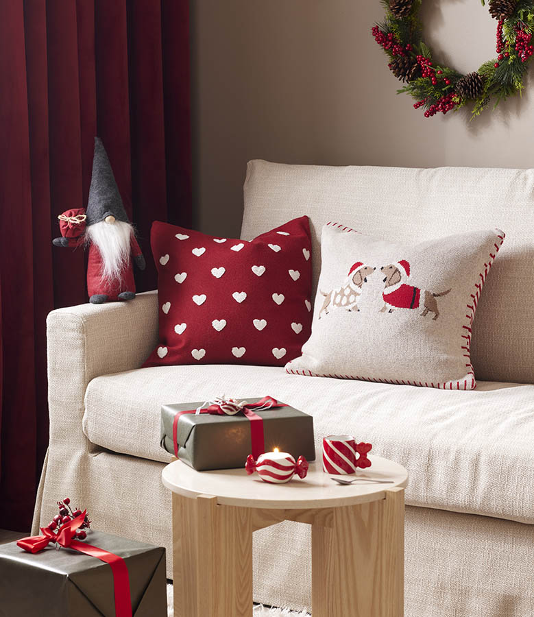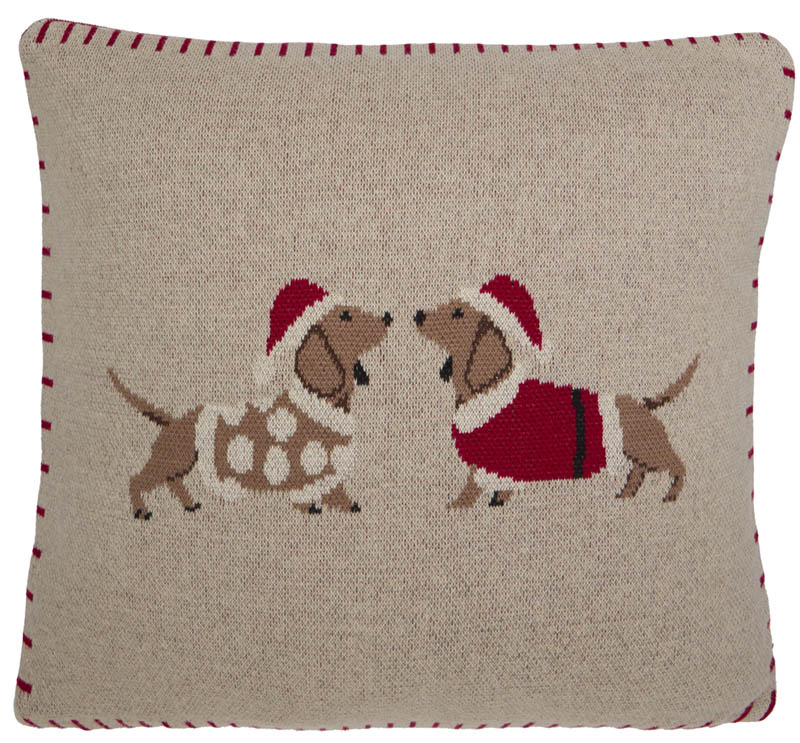 Strikket putetrekk med motiv av to søte hunder i julestemning. Et koselig og lekent design som sprer glede og varme i rommet – enten du plasserer det i sofaen, godstolen eller på barnerommet. Den strikkede strukturen gir en lun og hjemmekoselig følelse, perfekt for å skape den gode julestemningen. Kombiner gjerne med andre produkter fra samme serie.