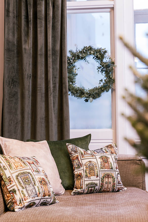 Med en sofa full av juleputer er det lett å skape en magisk stemning i stuen. Graham putetrekk har et eventyrlig julemotiv med mange fine detaljer. Trekket er vevd i tykk gobelin med innslag av gulltråder, som gir en diskret skimrende effekt.