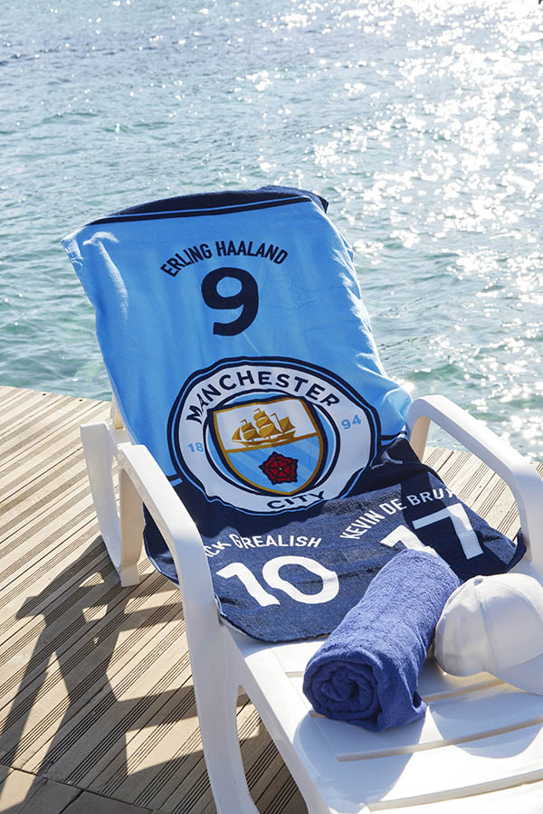 Badehåndkle med Manchester City logo, samt navn og nummer på Norges fotballhelt Erling Braut Haaland! En super gave til både små og store fans. Perfekt til både skolegymmen og badet hjemme.