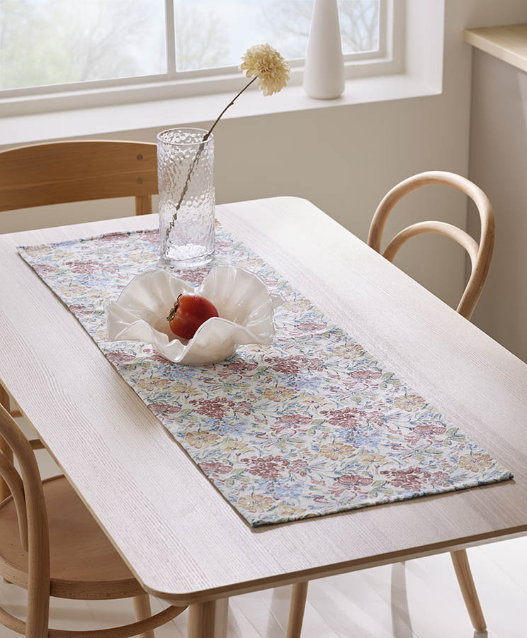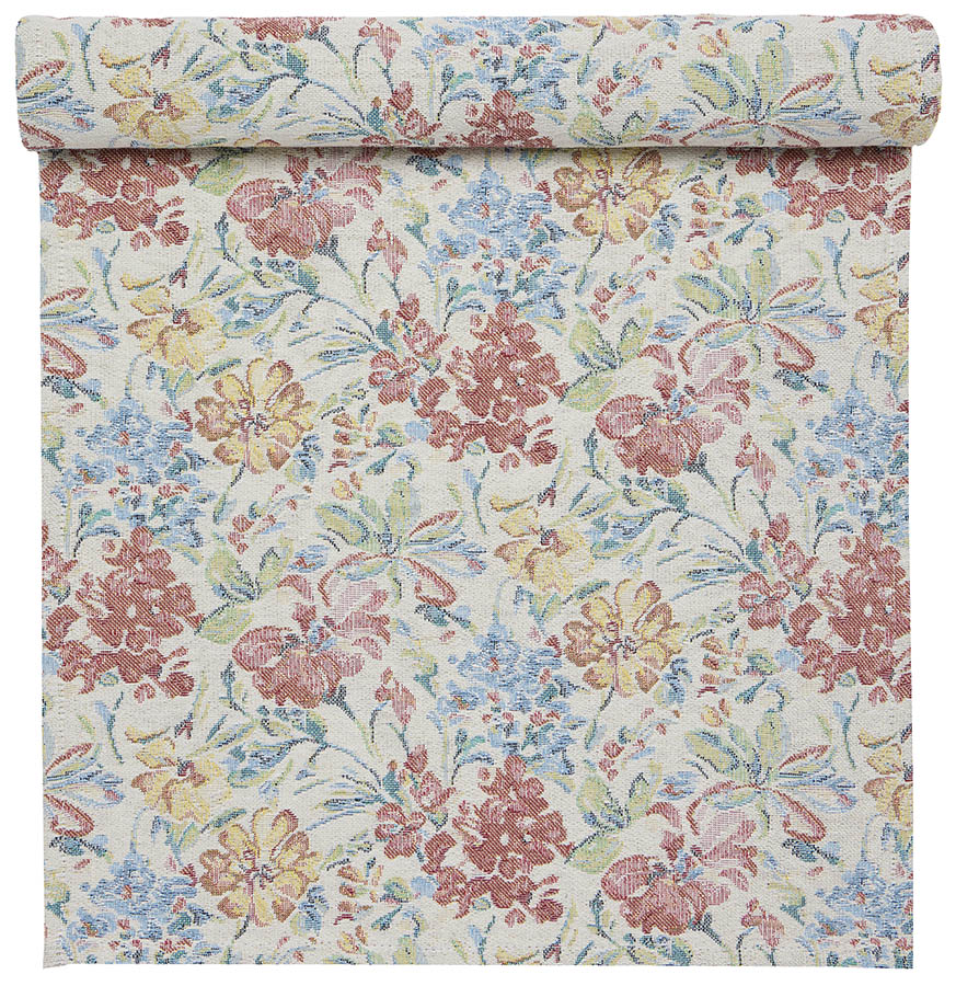 Blomstermønstret bordløper i tykk og slitesterk kvalitet. Det vakre mønsteret og de harmoniske fargene tilfører rommet et friskt, vårlig preg. Løperen er like fin på stuebordet som på kjøkkenbordet.