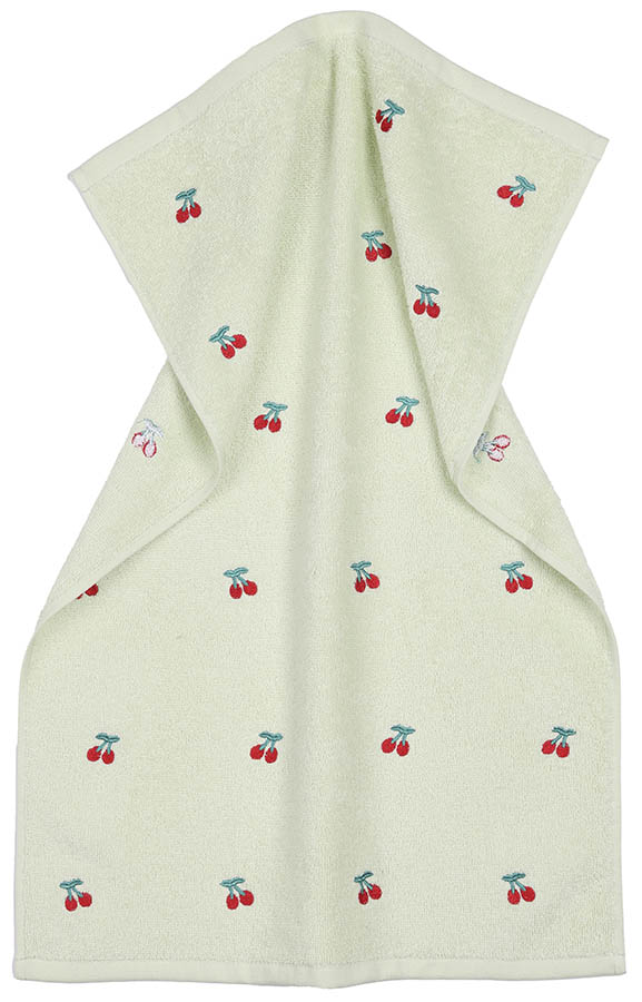 Mykt frottéhåndkle med brodert kirsebærmønster. Perfekt på badet eller gjestetoalettet, og kan også brukes som et sesongpreget håndkle på kjøkkenet.