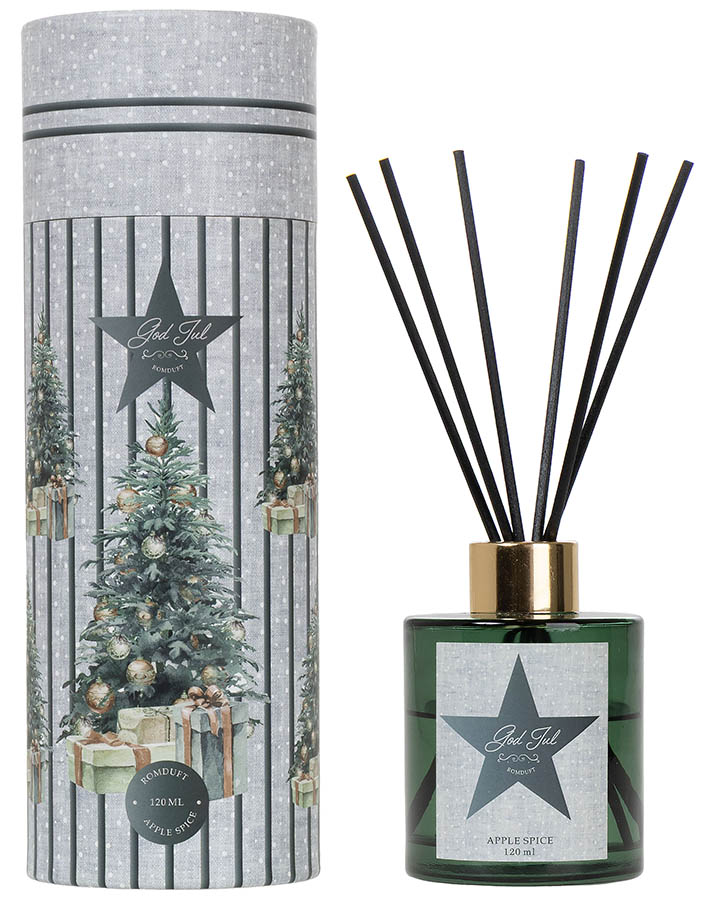 Romduft i vakker glassflaske, pakket i en pen eske med koselig julemotiv. Duften, som heter "Christmas Mood", har en krydret aroma med hint av nellik og kanel. En flott gave til deg selv eller noen andre som ønsker å tilføre hjemmet en herlig duft av jul.