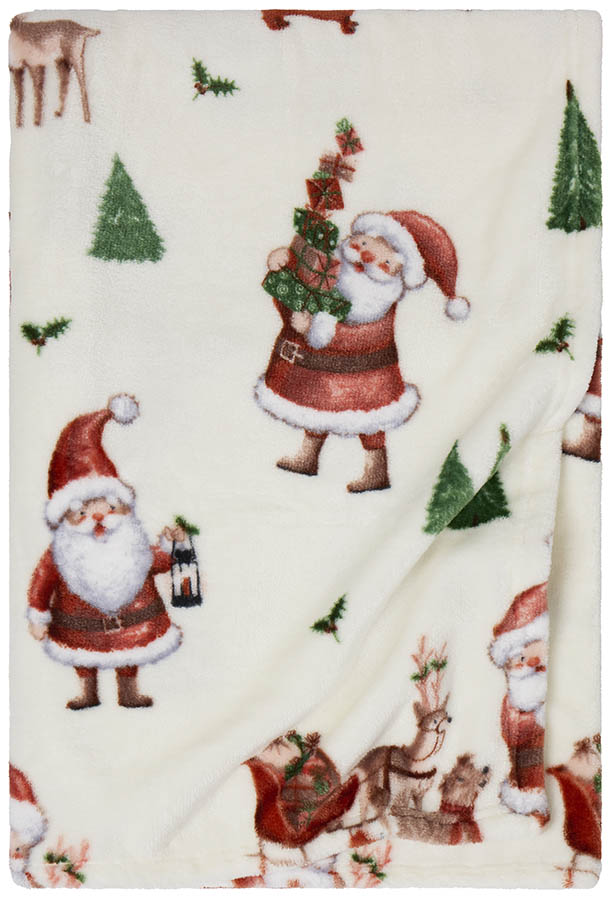 Koselig julepledd i myk fleecekvalitet. Pleddet har et lekent mønster med søte nisser, reinsdyr, trær og pakker – alt som hører julen til. Et design som vil glede både små og store i høytiden. Like fint i stuen som på barnerommet.