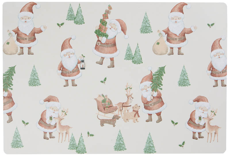 Med julebrikker skaper man enkelt en koselig stemning rundt bordet. Julekos spisebrikke er trykket med søte nisser, juletrær og reinsdyr. Brikken er laget av praktisk PVC og kan enkelt skylles eller tørkes av med en fuktig klut. En spisebrikke som skaper julestemning for både små og store rundt bordet.