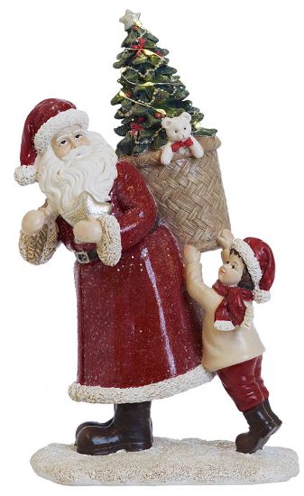 Batteridrevet julefigur i polystone. Lysslyngen rundt treet gir et vakkert og stemningsfullt skinn. Blir et fint blikkfang på både bord, hylle og i vinduskarm.