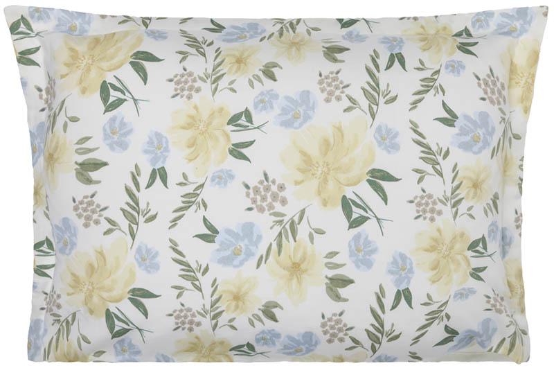 Enkelt putevar til standard hodepute, laget av myk og sval bomullssateng. Putevaret er tosidig, med storblomstret mønster på den ene siden og småblomstret på den andre. Vingen rundt kanten fungerer som en elegant detalj, og designet tilfører en vårlig stemning som gjør sengen ekstra innbydende.