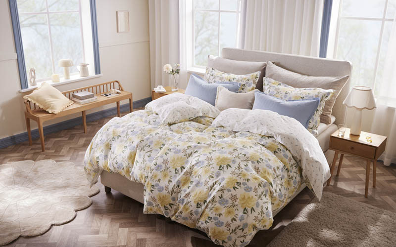Sengesett med blomstermønster