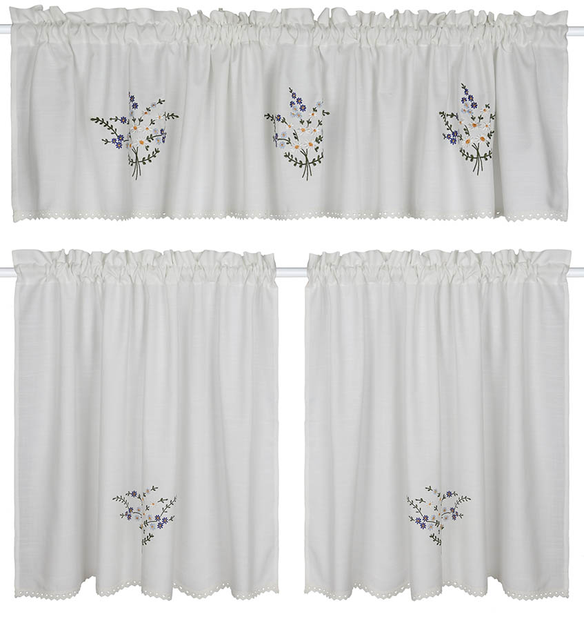 Kjøkkengardiner med brodert blomstermønster