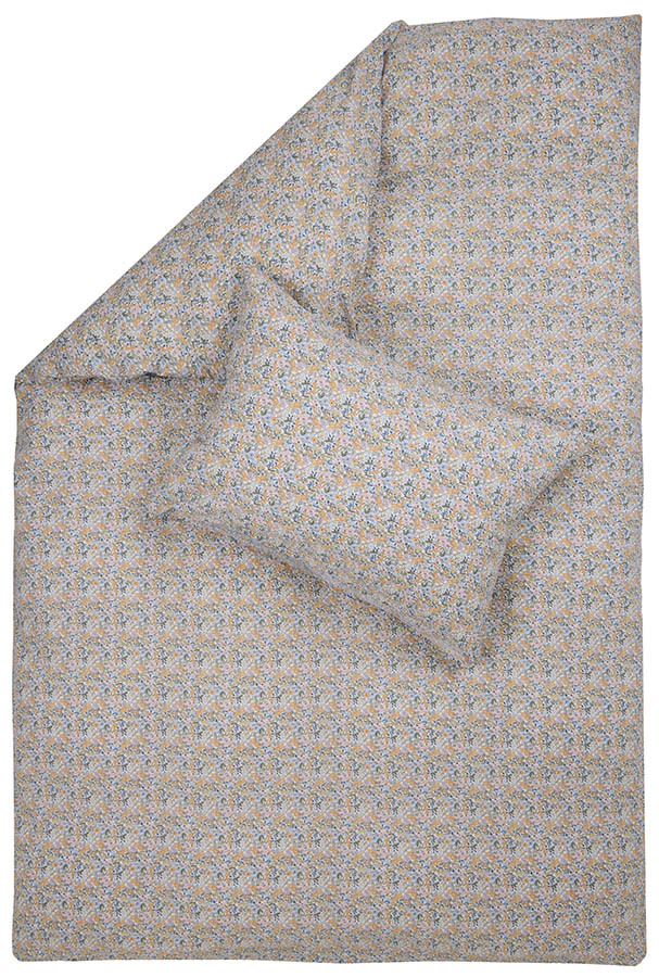 Mønstret sengesett i sval og luftig bomullskrepp. Sengesettet har et småblomstret mønster i lekne farger, og designet skaper en følelse av spirende vår.
