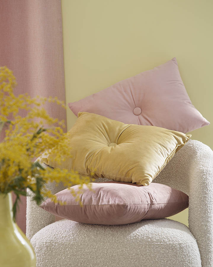 Ensfarget putetrekk i tykk og myk velourkvalitet. Har en dekorativ piping rundt kanten og skjult glidelås. Kan enkelt matches med flere av våre andre puter.
