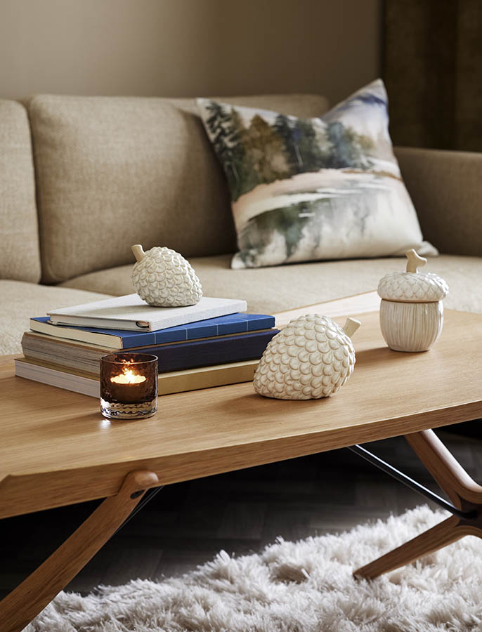 Ta med naturen inn med dekor inspirert av skogen! Kogle er en stilfull dekor-nøtt i keramikk, perfekt som bordpynt når du dekker høstbordet – gjerne sammen med høstblader og annen naturlig dekor. Den passer også fint som dekor i en hylle, på stuebordet eller i vinduskarmen.