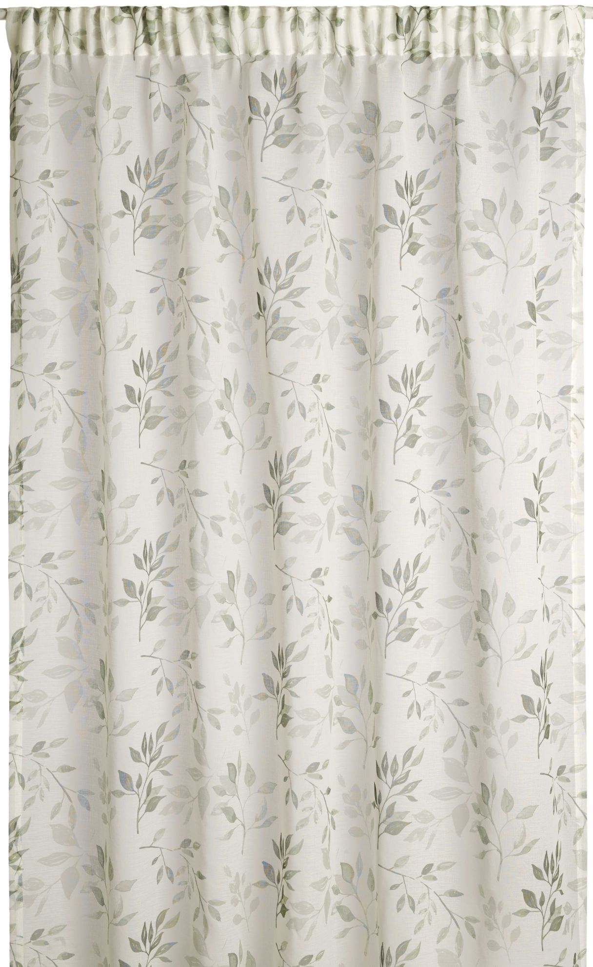Tynn og luftig gardin i florlett kvalitet. Det vakre bladmønsteret skaper liv og speiler naturen utendørs. Et design som passer like godt på soverommet som i stuen. Gardinen henges opp med rynkebåndskroker, enten på stang eller skinne.