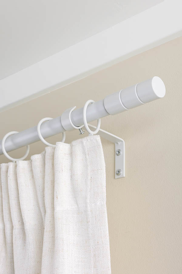 En vanlig regel er å montere gardinstangen minimum 10 cm over vinduslisten og la den stikke ut 10 cm på hver side. Hvis du vil ha rommet til å se høyere ut, kan du montere stangen så nær taket som mulig. For å få vinduet til å se bredere ut, kan du la stangen gå lenger ut på hver side.