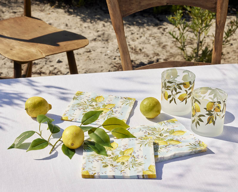 Stilig lykt i frostet glass med sitronmønster. Lykten gir bordet et eksotisk og sommerlig preg – som skapt for varme sommerkvelder.