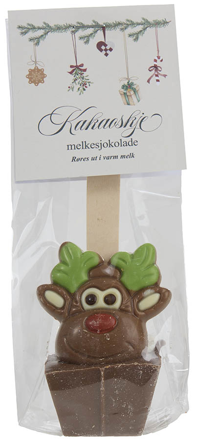 Kakaopinne formet som et reinsdyr, laget av melkesjokolade. Hell varm melk i julekoppen, rør med pinnen til den har smeltet, innta koseposisjon – og nyt! Kommer i en fin gavepose, perfekt som kalendergave eller julegave til den som har alt.