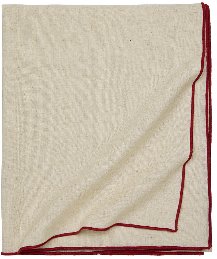 Et vakkert dekket julebord setter stemningen for en god middagsopplevelse. Lona er en naturfarget duk i linblanding med en rød, delikat søm rundt kanten. En tidløs juleduk du kan hente frem år etter år. I serien finner du også matchende tekstilservietter.