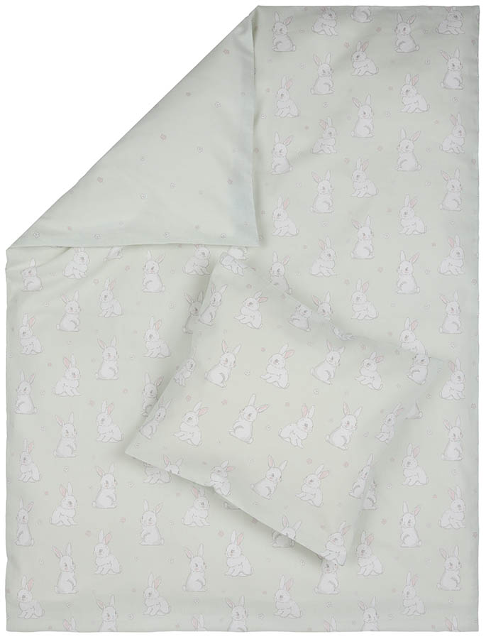 Babysengesett til sprinkelseng, laget av myk bomull. Forsiden er dekorert med nusselige kaniner som gjør sengesettet ekstra søtt, mens baksiden har et delikat blomstermønster. Et koselig design som garantert vil glede de minste! Finnes i flere størrelser.